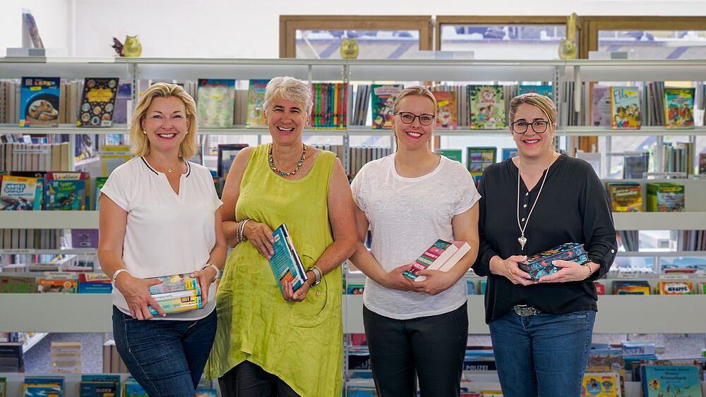 In der Bibliothek sind vier Mitarbeiter:innen für Sie im Einsatz.